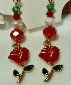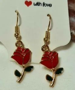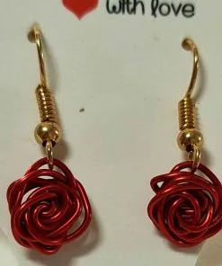 Handcrafted red wire rose with gold French hook.