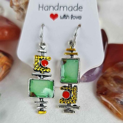 Turquoise chips with Silver Indian Feather charm and hypo-allergenic French hooks.